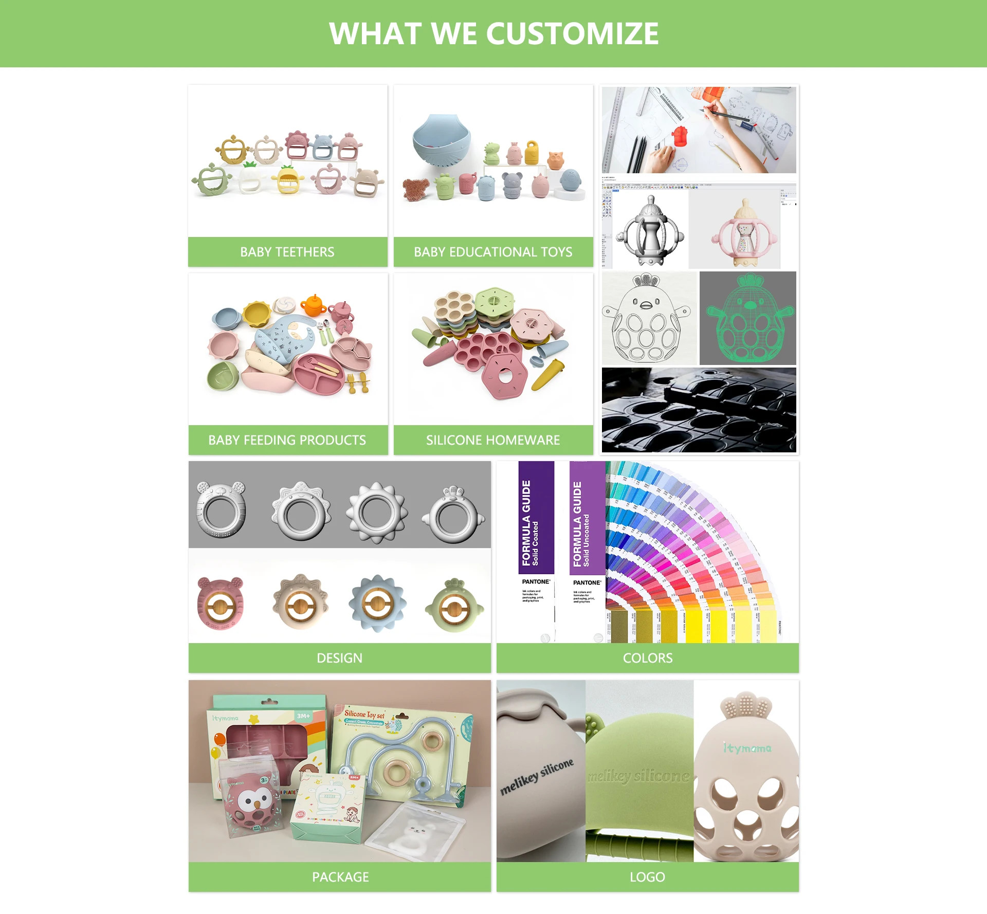Melikey-Mordedores de bebé personalizados, juguetes de dentición OEM sin BPA, mordedores de silicona